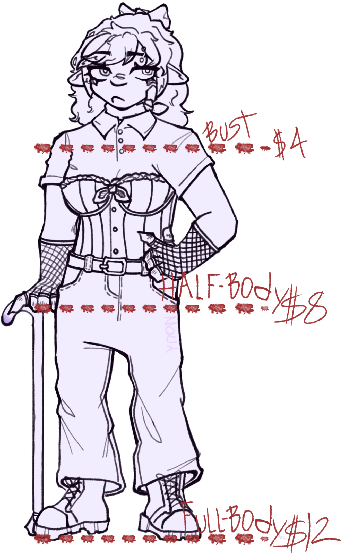 2.2 after lineart is finished and approved by you, any major edits to it will incur a fee.3. i reserve rights to post any commissions on any of my social media. HOWEVER they will be clearly labeled as commissions and, if including OC's that arent mine, will credit the owner.4. you are allowed to freely share and post any art you commission from me, as long as i am credited. i also prefer to be @'d in the first few posts!
